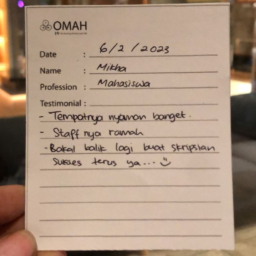 Tempatnya cozy, homey banget, playlistnya juga oke. Sukses terus, Omah!