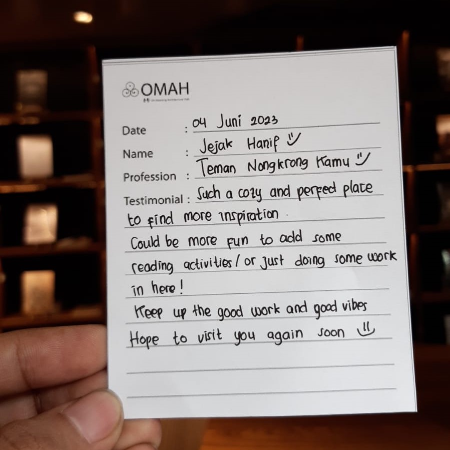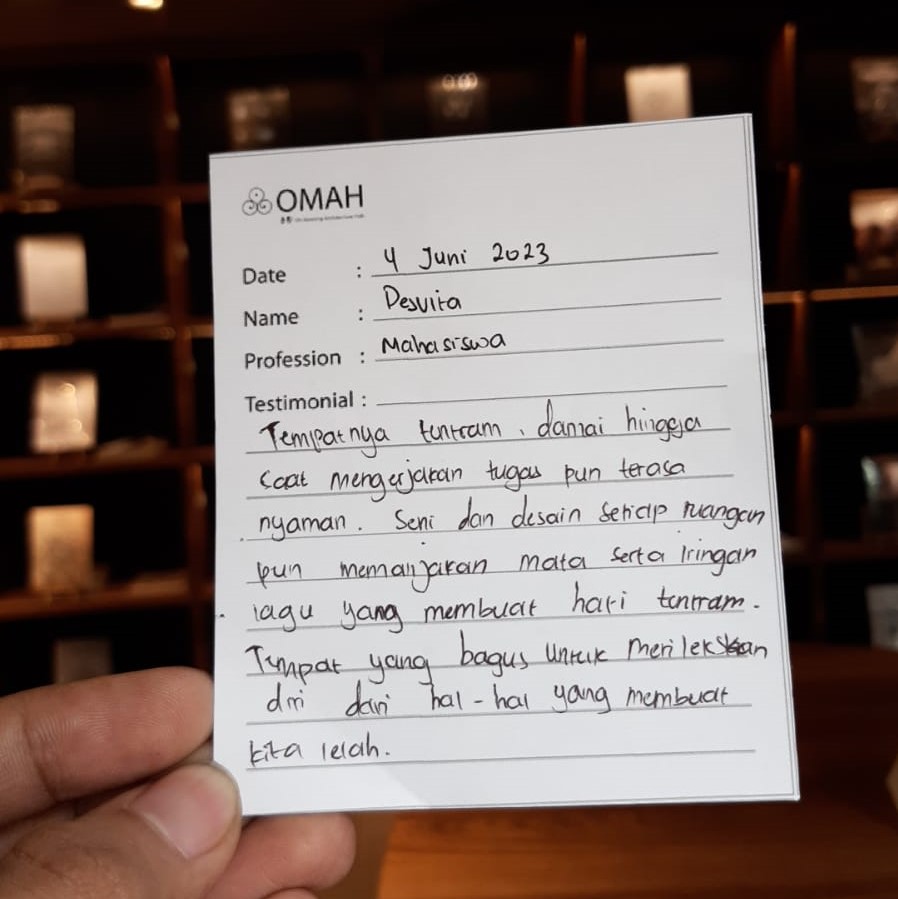 Tempatnya tentram, damai hingga saat mengerjakan tugas pun terasa nyaman. Seni dan desain setiap ruangan pun memanjakan mata serta iringan lagu yang membuat hati tentram. tempat yang bagus untuk mereleks kan diri dari hal-hal yang membuat kita lelah.