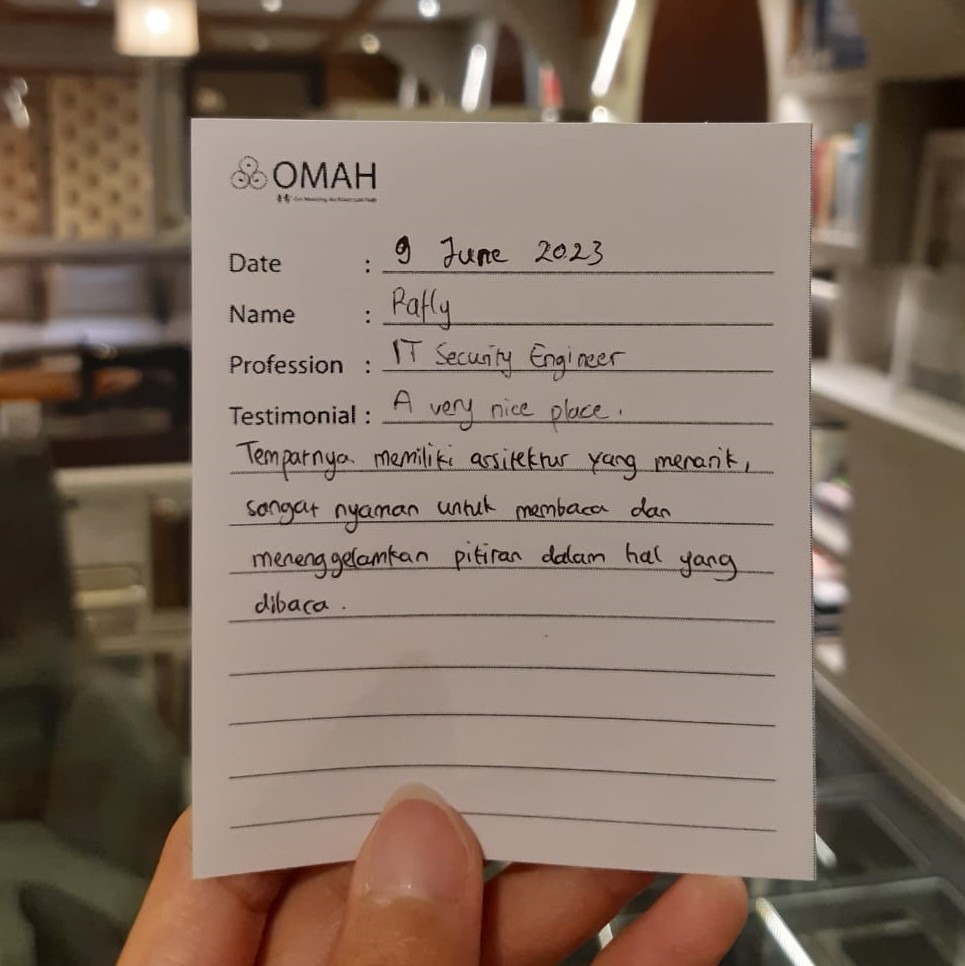 A very nice place. Tempatnya memiliki arsitektur yang menarik, sangat nyaman untuk membaca dan menenggelamkan pikiran dalam hal yang dibaca.