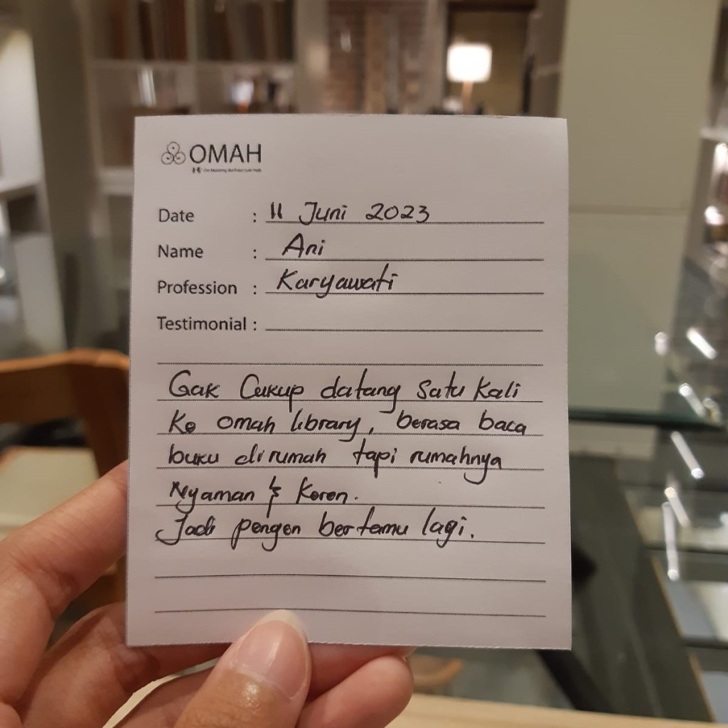 Gak cukup datang satu kali ke Omah Library, berasa baca buku dirumah tapi rumahnya nyaman dan keren. jadi pengen bertemu lagi.
