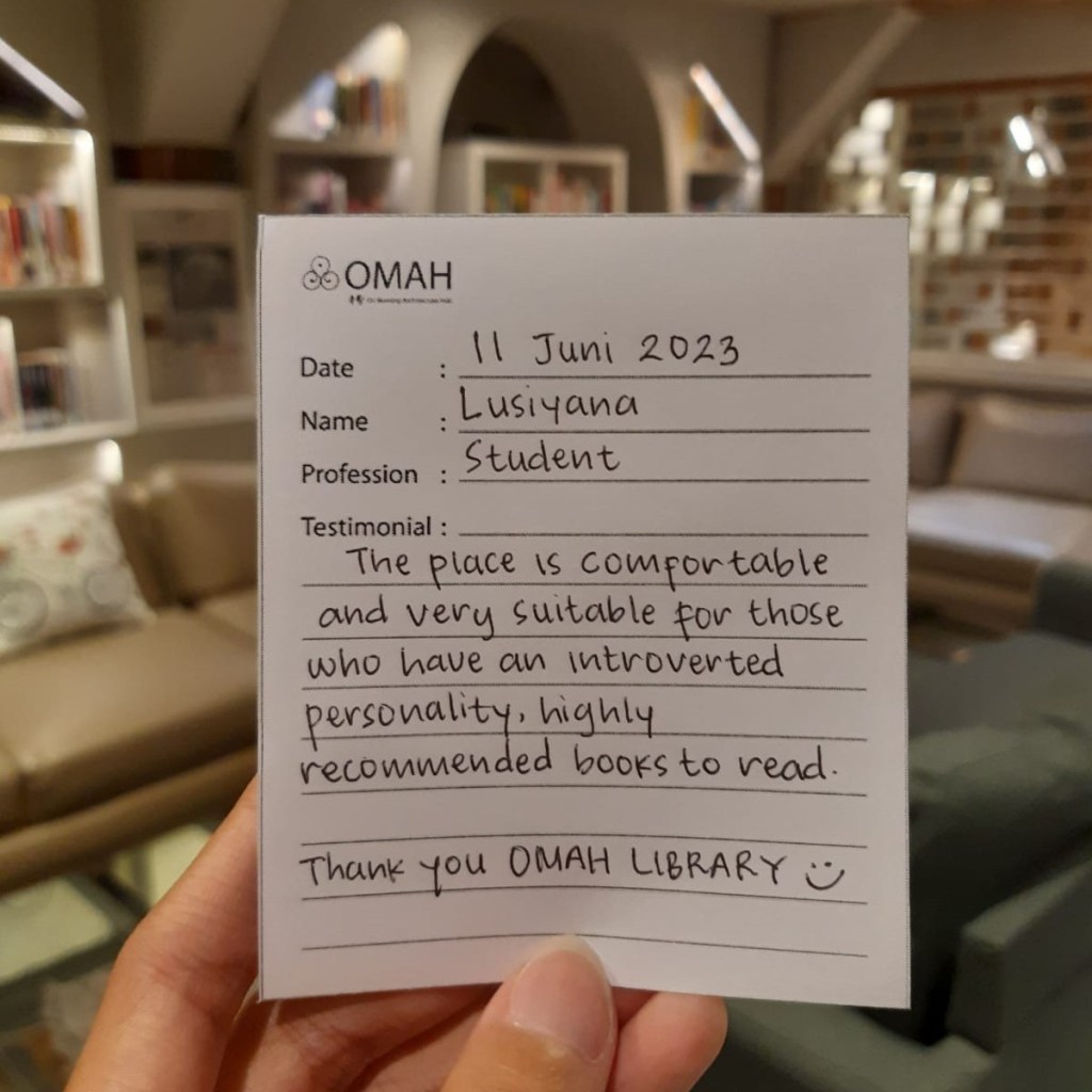 The place is comfortable and very suitable for those who have an introverted personality, highly recommednded books to read. Thank you Omah Library 🙂