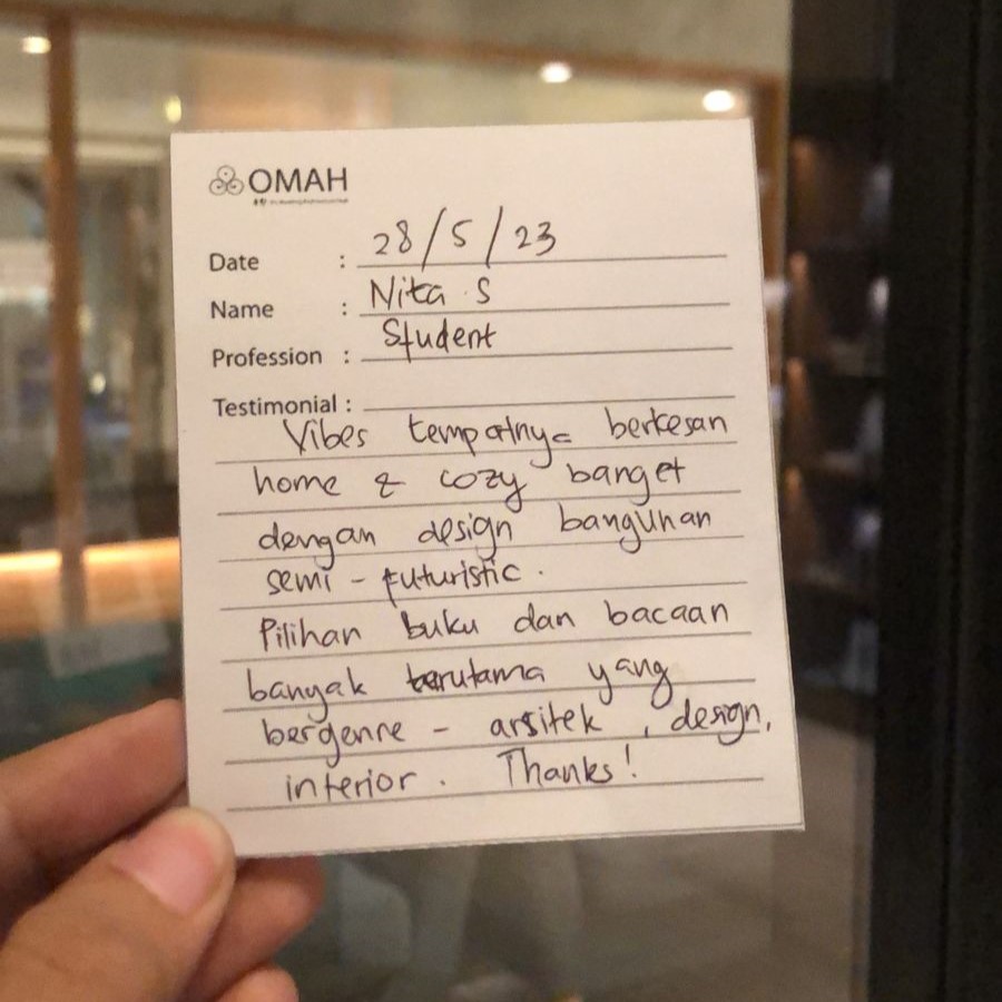 Vibes tempatnya berkesan home & cozy banget dengan design bangunan semi-futuristic. Pilihan buku dan bacaan banyak terutama yang bergenre arsitek, design, interior. Thanks!