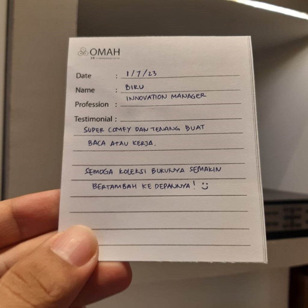 Super comfy dan tenang buat baca atau kerja. Semoga koleksi bukunya semakin bertambah ke depannya! 🙂