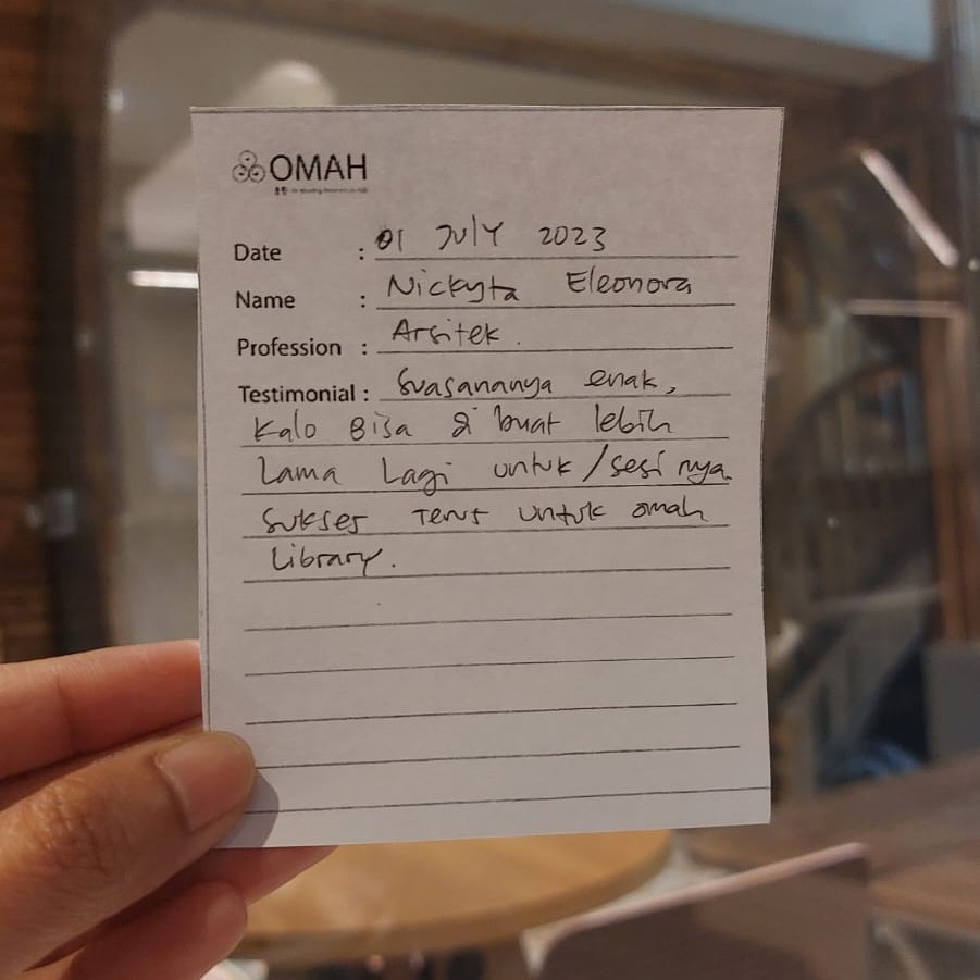 Suasananya enak, kalo bisa di buat lebih lama lagi untuk/sesinya. Sukses terus untuk Omah Library.