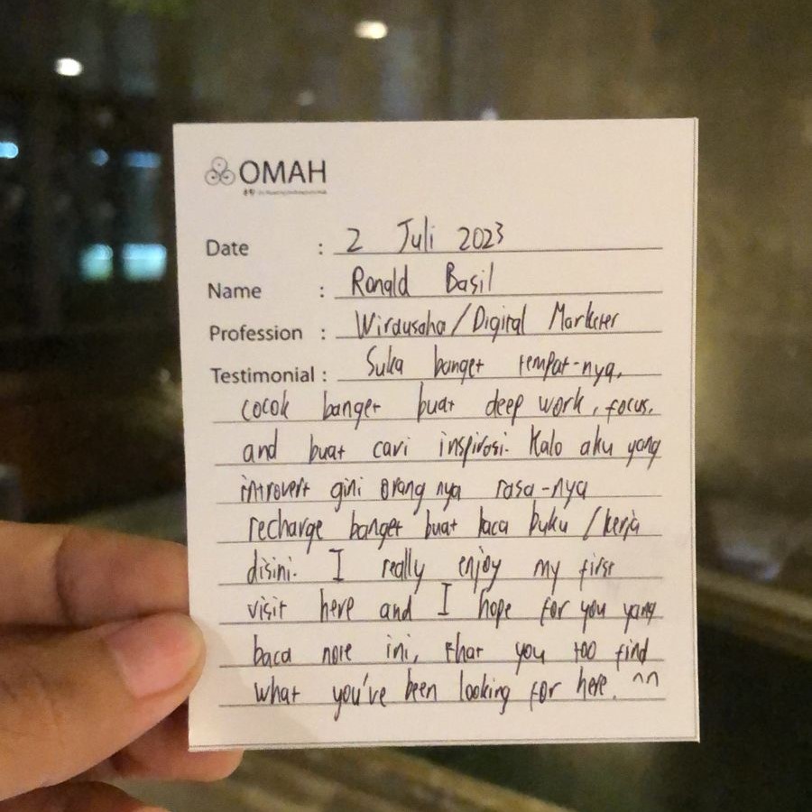 Omah Library cocok banget untuk fokus baca/melakukan hal produktif seperti cari ide baru karena ambience-nya mendukung aekali. Bakal balik lagi ke sini!