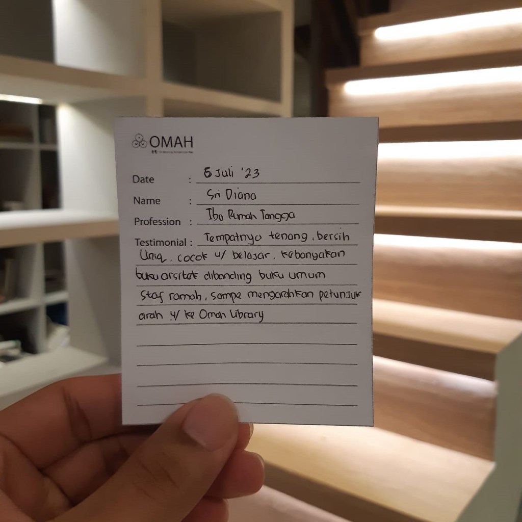 Tempatnya tenang, bersih, unik, cocok untuk belajar, kebanyakan buku arsitek dibandingkan dengan buku umum. Staff ramah, sampe menunjukkan arah ke OMAH libary.