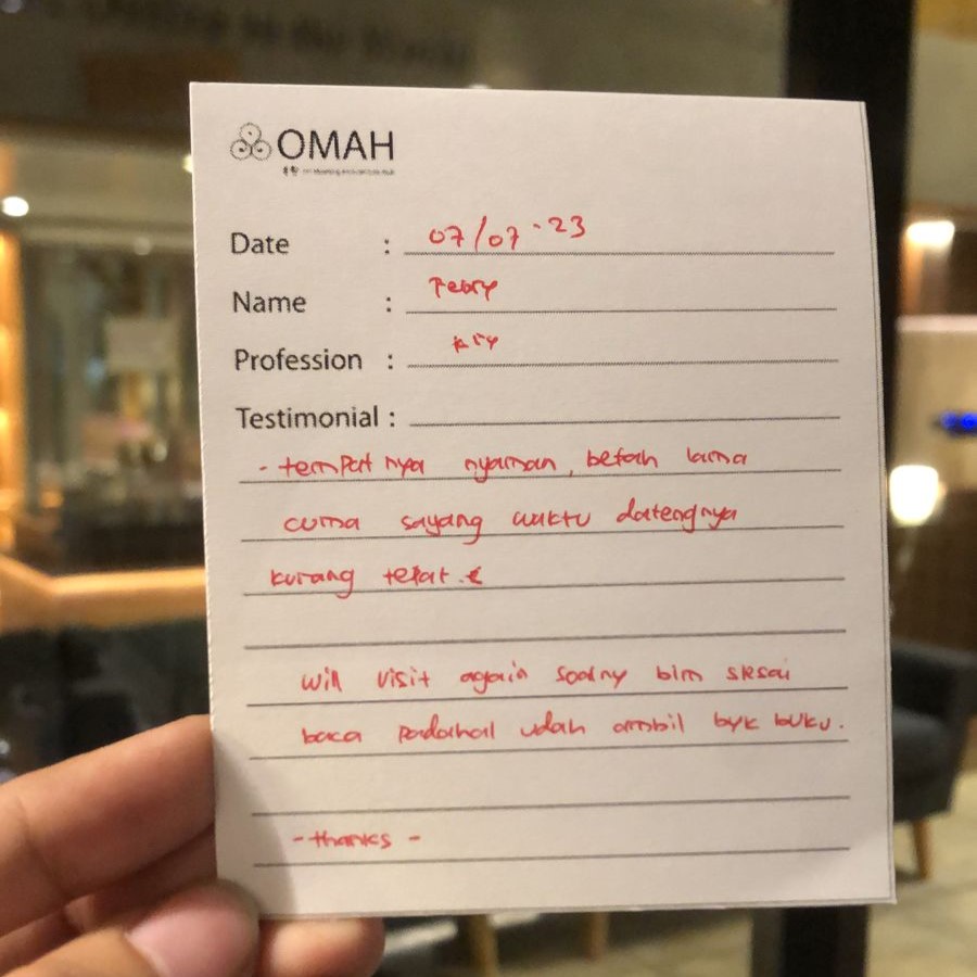 Tempatnya nyaman, betah lama cuma sayang waktu datengnya kurang tepat. Will visit again soalnya belum selesai baca padahal udah ambil banyak buku. Thanks.