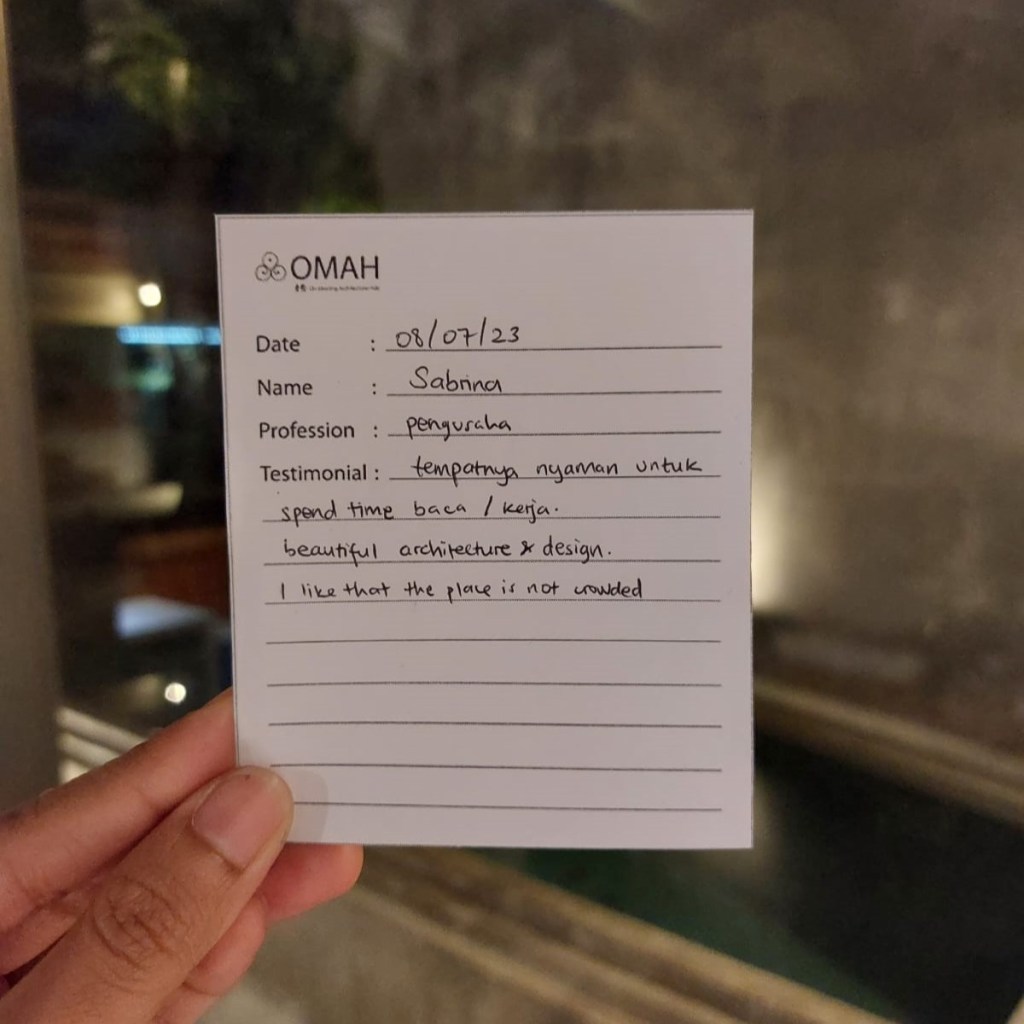 Tempatnya nyaman untuk spend time baca, kerja. Beautiful architecture & design. I like that the place is not crowded.
