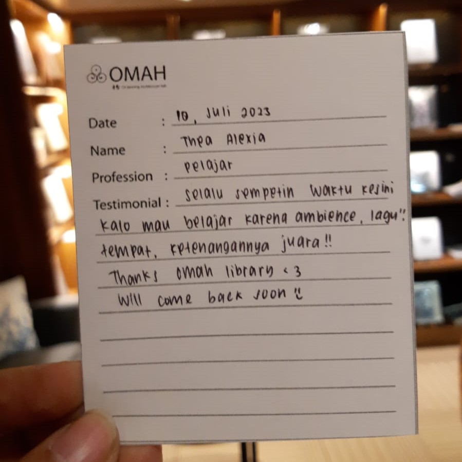 Selalu sempetin waktu ke sini, kalau mau belajar karena ambience, lagu, tempat, ketenangannya juara!! Thanks Omah Libary ❤ will come back soon =)