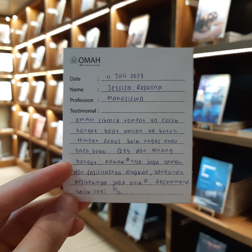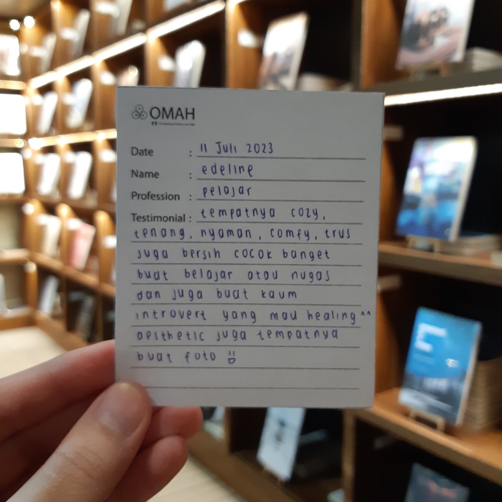 Omah Library tempat yang cocok banget buat kalian yang butuh tempat fokus baik nugas atau baca buku. Cozy dan tenang banget. Kakak-kakaknya juga ramah dan fasilitasnya lengkap. Bangunan arsiteknya juga unik-unik. Recommend balik lagi.💕