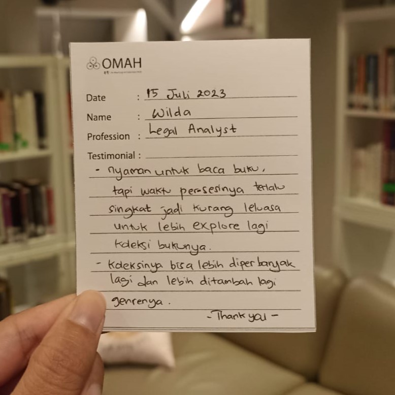 Nyaman untuk baca buku, tapi waktu persesinya terlalu singkat, jadi kurang leluasa untuk lebih explore lagi koleksi bukunya.