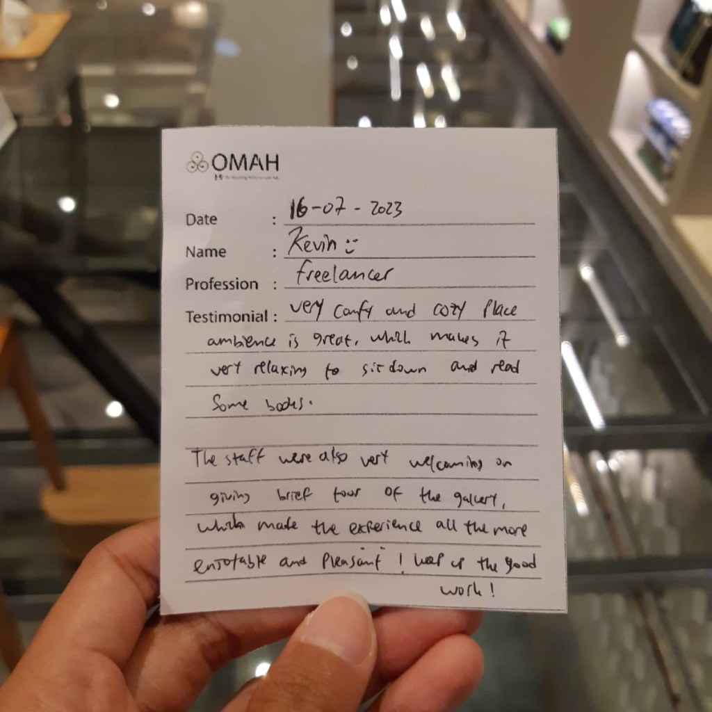 Very comfy and cozy place. Ambience is great . will make it very relaxing to sit down and read some books. The staff were also very welcoming on giving brief tour of the galery, which made the experience all the more ejotable pleasintif! keep up the good.