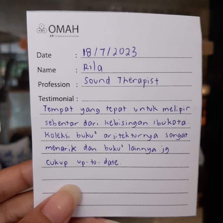 Tempat yang tepat untuk melipir sebentar dari kebisingan Ibukota. Koleksi buku-buku arsiteknya sangat menarik dan buku lainnya juga cukup up to date.