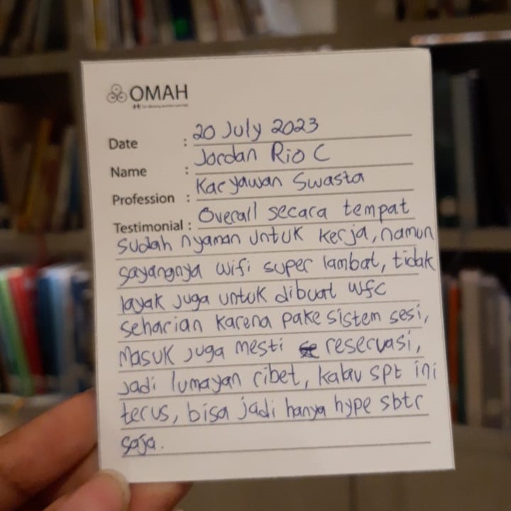 Overall secara tempat sudah nyaman untuk kerja, namun sayangnya wifi super lambat, tidak layak juga untuk WFC seharian karena pakai sistem sesi, masuk juga mesti reservasi, jadi lumayan ribet, kalau seperti ini terus bisa jadi hanya hype sebentar saja.