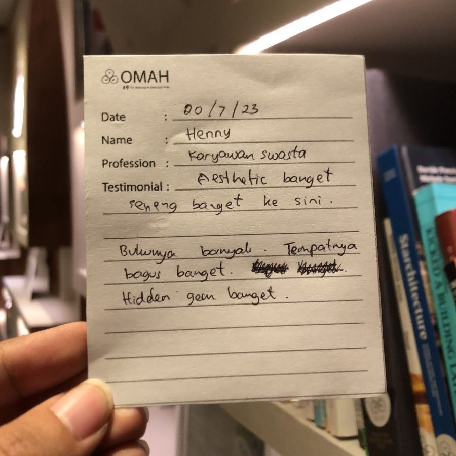 Aesthetic banget senang banget ke sini. Bukunya banyak, tempatnya bagus banget. Hidden gem banget.