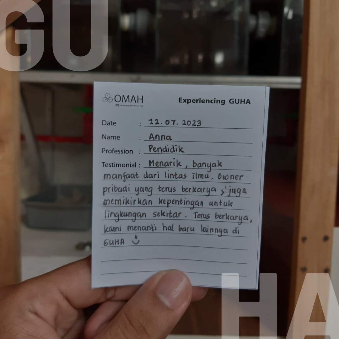 Menarik, banyak manfaat dari lintas ilmu. Owner pribadi yang terus berkarya, juga memikirkan kepentingan untuk lingkungan sekitar. Terus berkarya, kami menanti hal baru lainnya di Guha:)