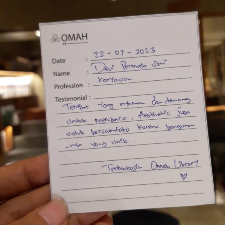 Tempatnya cozy dan bersih. Sangat nyaman membaca ataupun mengerjakan tugas di OMAH LIBRARY. Sukses terus Omah Library. ❤