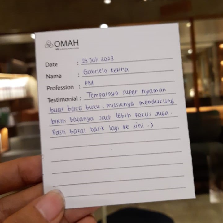 Tempatnya super nyaman buat baca buku, musiknya mendukung bikin bacanya jadi lebih fokus juga. Pasti bakal balik lagi ke sini 😉