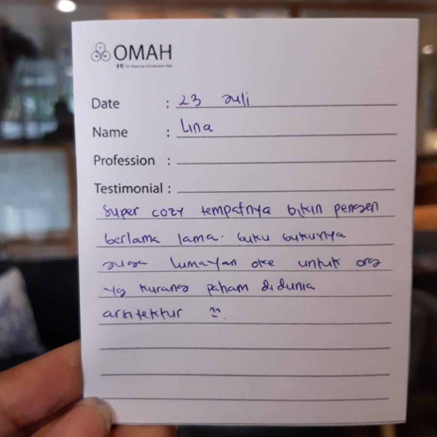 Super cozy tempatnya bikin pengen berlama-lama. Buku-bukunya juga lumayan oke untuk orang yang kurang paham di dunia arsitektur.
