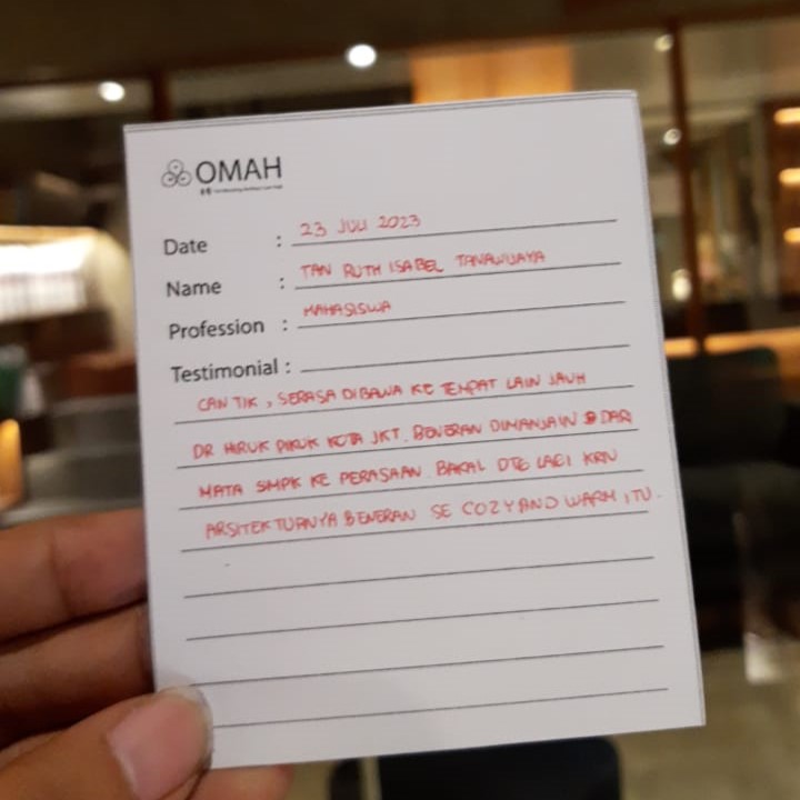 Cantik, serasa dibawa ke tempat lain, jauh dari hiruk pikuk kota Jakarta. Beneran dimanjain, dari mata sampe ke perasaan. Bakal datang lagi karena arsitekturnya beneran se-cozy and warm itu.