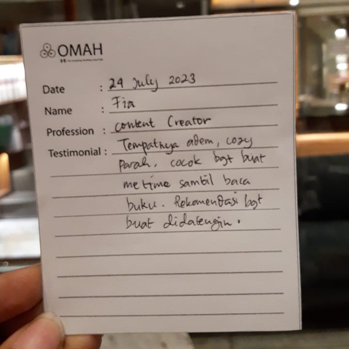 Tempatnya cozy dan tenang, cocok untuk saya yang suka keheningan. Sukses terus Omah Library. semoga bisa buka di Bandung.