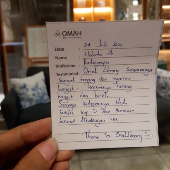 Omah Library suasananya sangat tenang dan nyaman banget. Tempatnya hening banget dan bersih. Semoga kedepannya lebih sukses lagi:) dan semakin dikenal dikalangan luas.