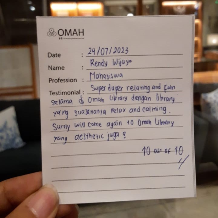 Super duper relaxing and fun. Selama di Omah Library dengan library yang suasananya relax and calming. Surely will come again to Omah Library yang aesthetic juga! 10 out of 10.