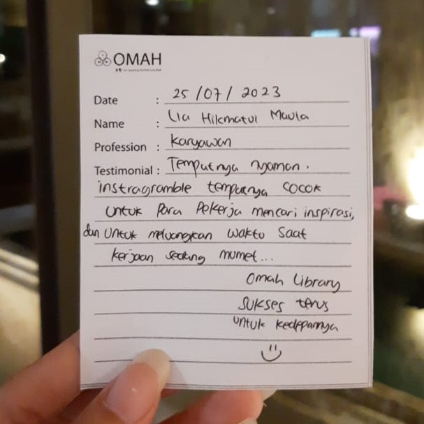 Tempatnya nyaman, instagramable, tempatnya cocok untuk para pekerja mencari inspirasi dan untuk meluangkan waktu saat kerjaan sedang mumet. Omah Library sukses terus untuk kedepannya:)