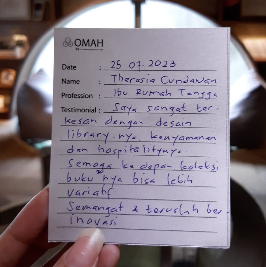 library-nya, kenyamanan dan hospitality-nya. Semoga kedepan koleksi bukunya bisa lebih variatif.