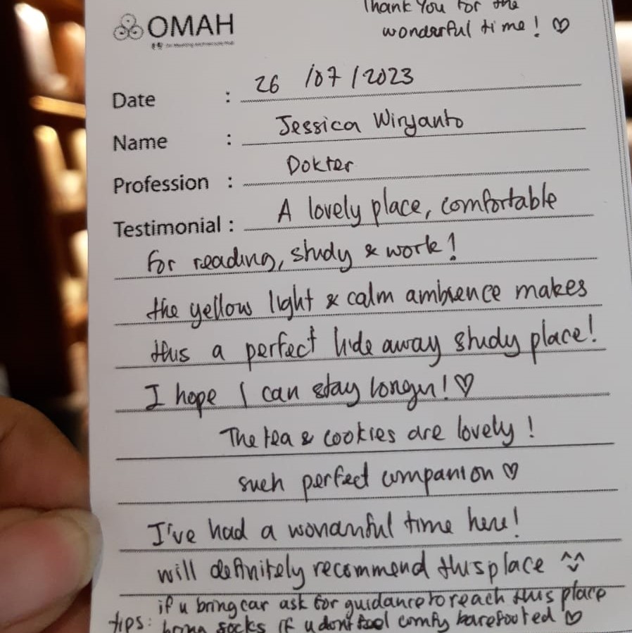 A lovely place, comfortable for reading, study & work! The yellow light & calm ambience makes this a perfect hide away study place! I hope i can stay longer!<3 The tea & cookies are lovely!