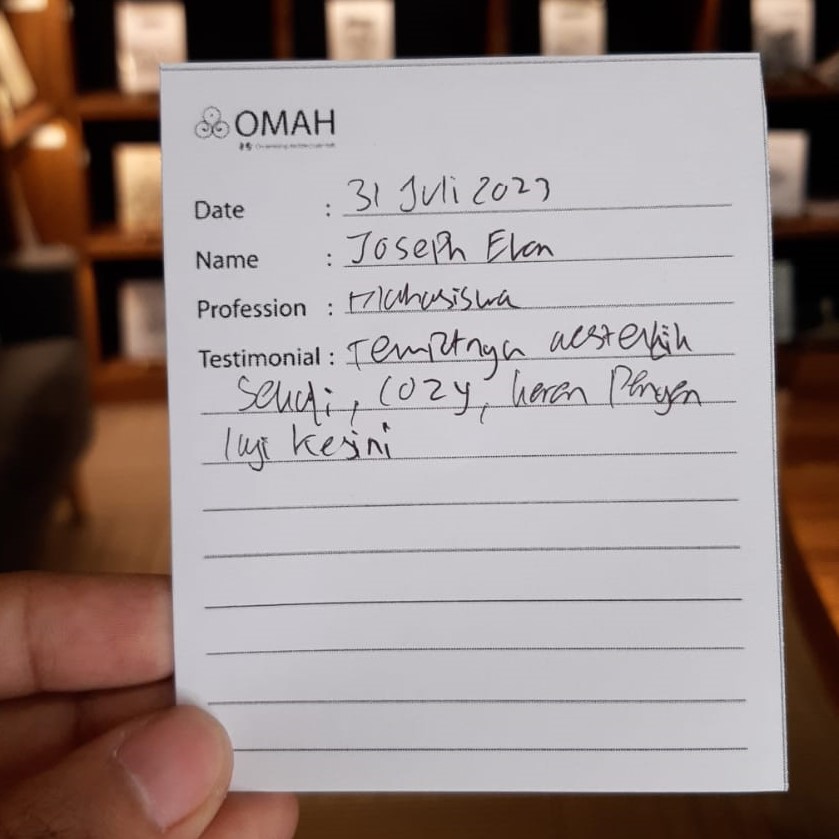Tempatnya aesthetic, sunyi, cozy, keren. Pengen lagi ke sini.