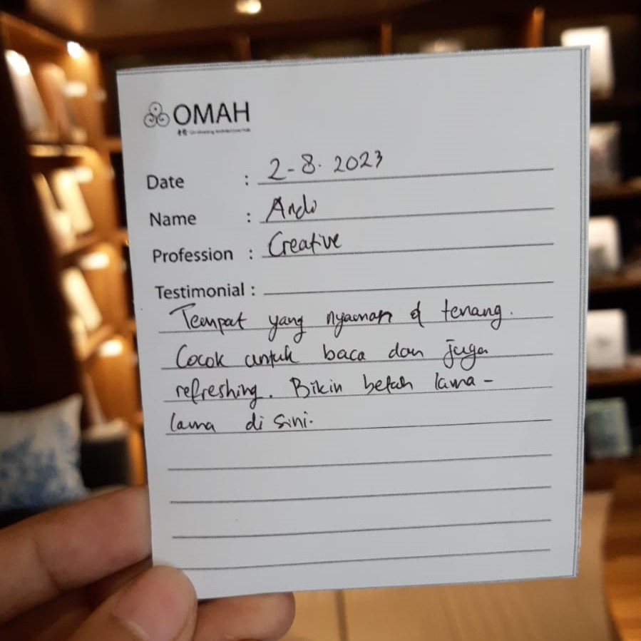 Tempatnya sangat unik, baik secara arsitetur dan desain interior-nya. Ambience-nya calming, homey, and serene. Banyak buku arsitektur, desain, atau art yang jarang ditemui di perpustakaan lain.