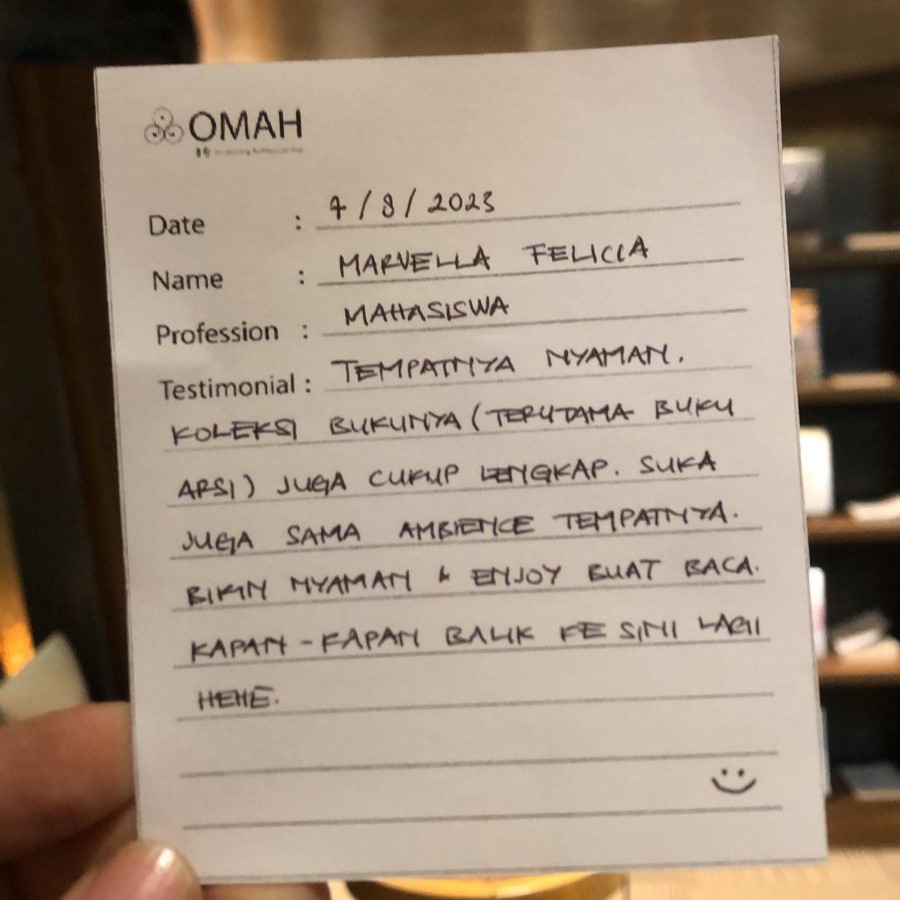 Tempatnya nyaman koleksi bukunya (terutama buku arsi) juga cukup lengkap, suka juga sama ambience tempatnya. Bikin nyaman & enjoy buat baca, kapan-kapan balik ke sini lagi hehe.