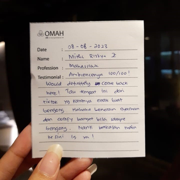 Ambience-nya 100/100! Would definitely come back here! Tau tempat ini dari tiktok yang katanya enak buat bengong. Hahaha beneran nyaman dan comfy banget bisa sampe bengong. Nanti bakalan main ke sini lagi ya!