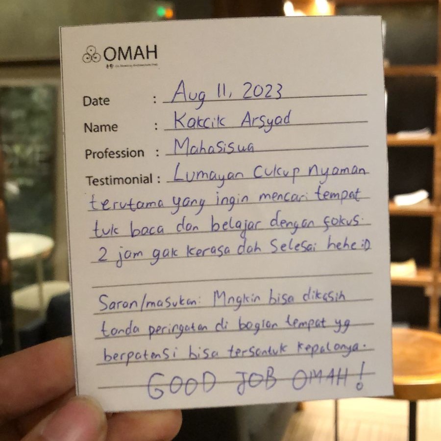 Lumayan cukup nyaman terutama yang ingin mencari tempat untuk baca dan belajar dengan fokus. 2 jam gak kerasa dah selesai hehe 😀 Saran/masukan : mungkin bisa dikasih tanda peringatan di bagian tempat yang berpotensi bisa tersentuk kepalanya.