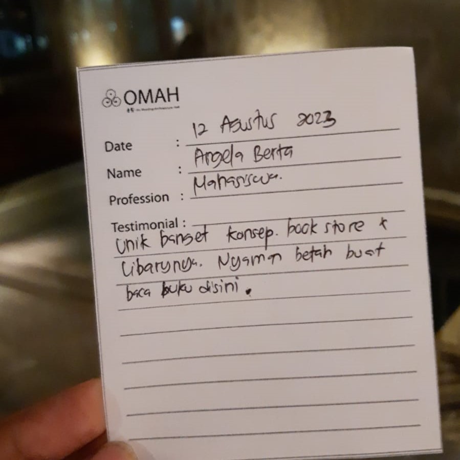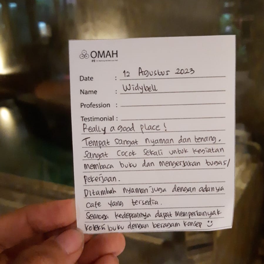 Sangat cocok sekali untuk kegiatan membaca buku dan mengerjakan tugas/pekerjaan. Ditambah nyaman juga dengan adanya cafe yang tersedia. Semoga kedepannya dapat memperbanyak koleksi buku dengan beragam konsep:)