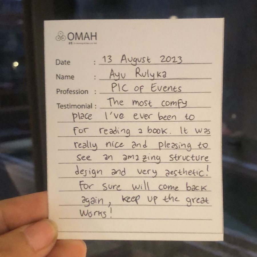 The most comfy place i’ve ever been to for reading 2 book. it was really nice amazing structure design and very aesthetic! for sure will come back again, keep up the great works!
