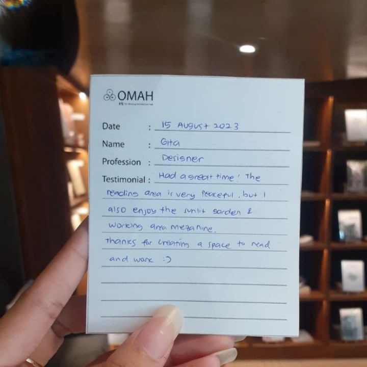 Had a great time! The reading area is very peaceful. But, i also enjoy the sunlit garden & working area mezaine. Thanks for creating a space to read and were 🙂