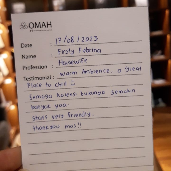 Warm ambience, a great place to chill 😉 semoga koleksi bukunya semakin banyak ya. Staff very friendly, thank you mas!!