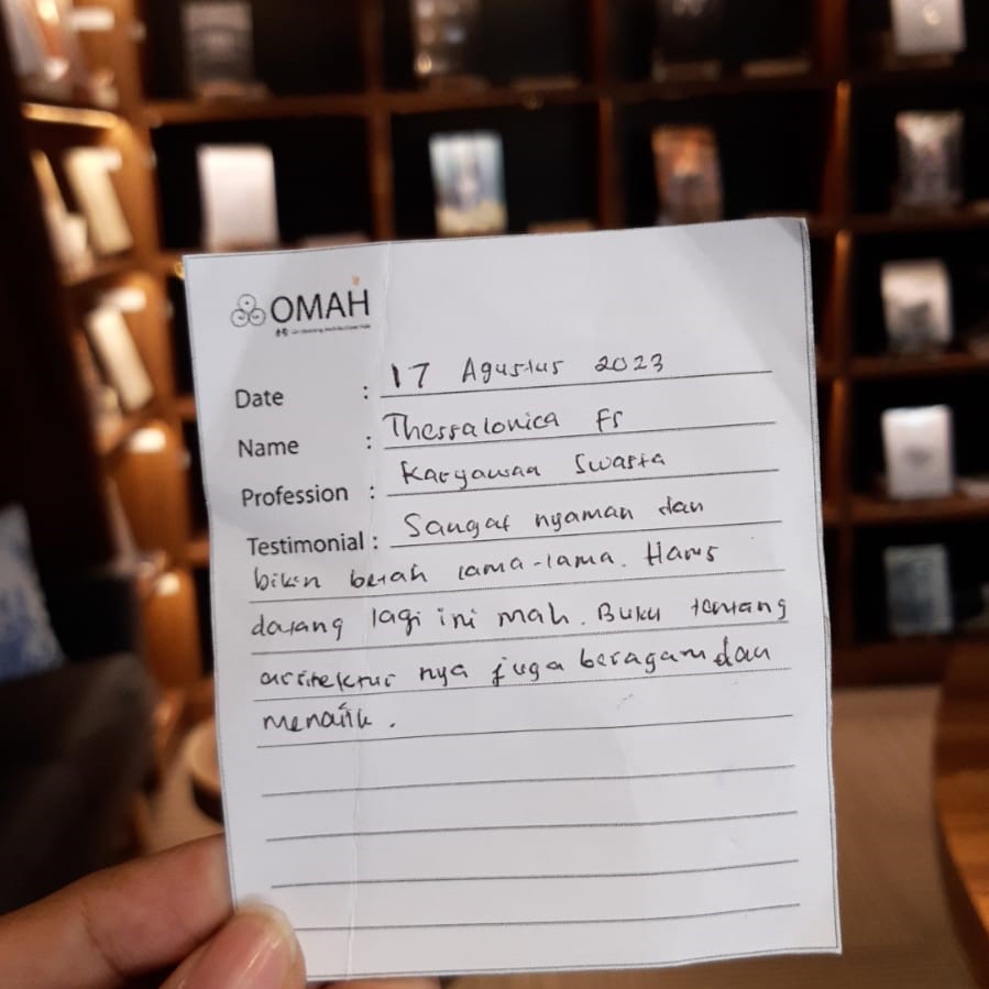 Koleksi buku arsitektur yang banyak & suasana tempat yang nyaman buat ngga mau pindah & keluar dari Omah Library. Terima kasih Omah Library.
