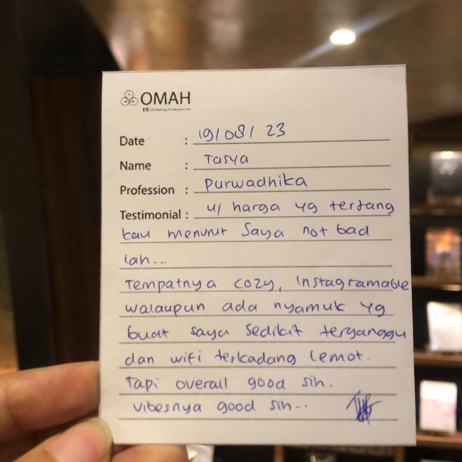 Untuk harga yang terjangkau menurut saya not bad lahh… Tempatnya cozy, instagramable walaupin ada nyamuk yang buat saya sedikit terganggu dan wifi terkadang lemot. Tapi overall good sih. Vibesnya good sih.