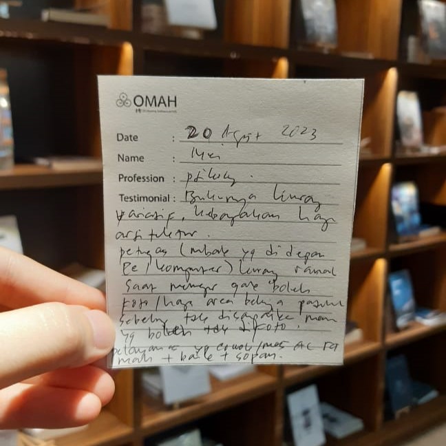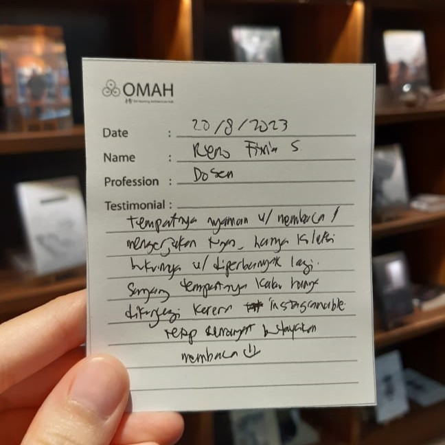 Bukunya kurang variatif, kebanyakan buku arsitektur. Petugas( mba yang di depan pc komputer) kurang ramah saat menegur gara-gara tidak boleh foto, area bekerja sebelumnya tidak disampaikan mana yang boleh tidak difoto. Pelayan yang cowo, mas Al ramah+baik+ sopan.