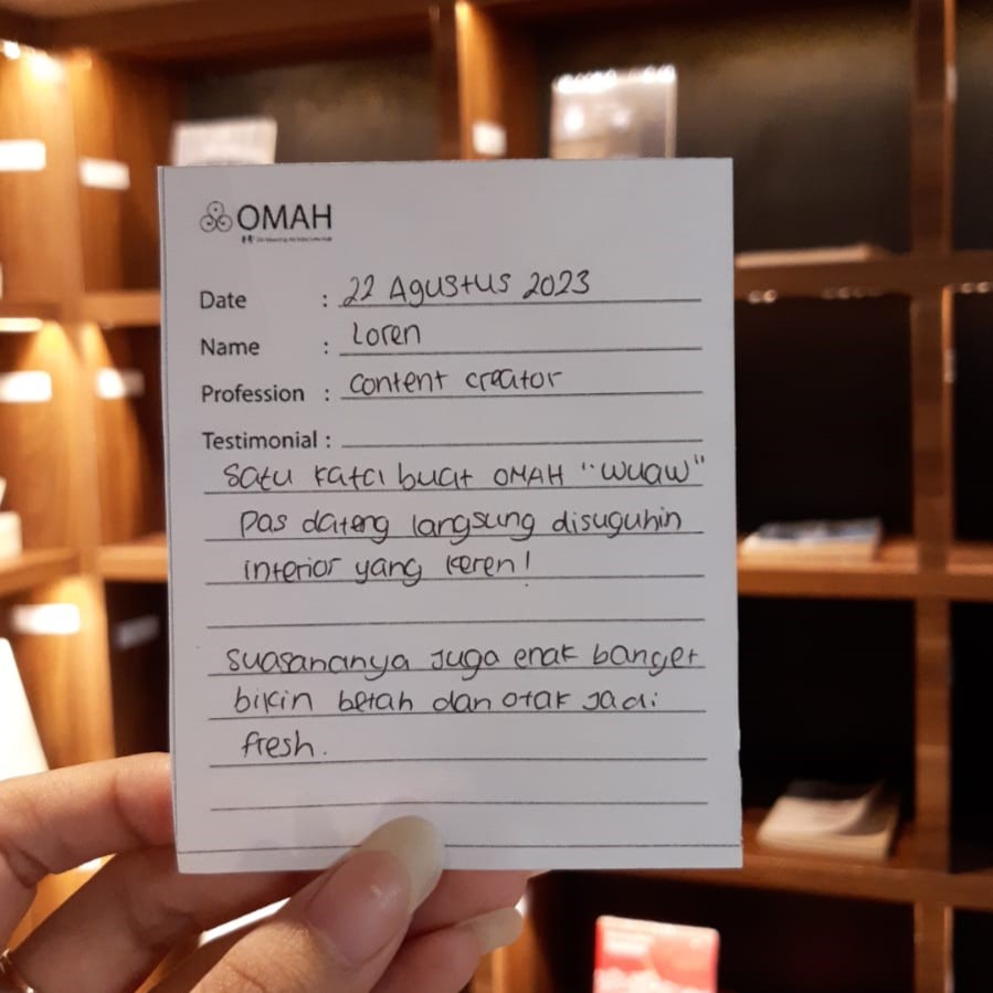 Satu kata buat OMAH “ wuaw” Pas datang langsung disuguhin interior yang keren! Suasananya juga enak banget bikin betah dan otak jadi fresh.