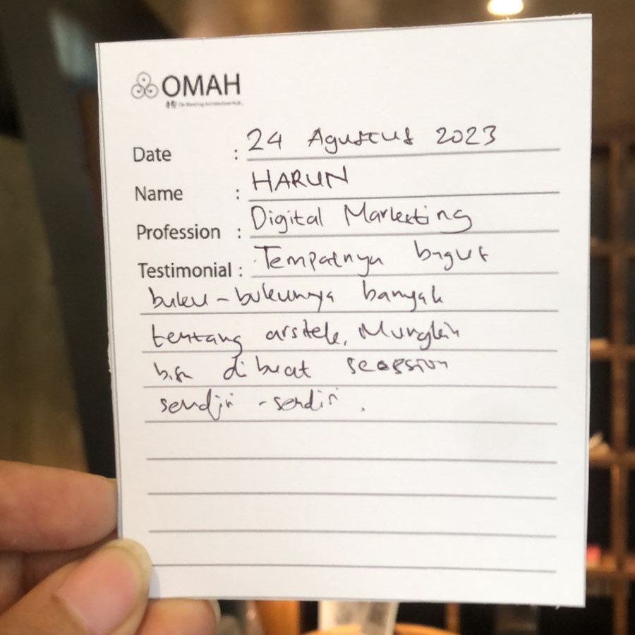 Tempatnya bagus, buku-bukunya banyak tentang arsitek, mungkin bisa dibuat seassion sendiri-sendiri.
