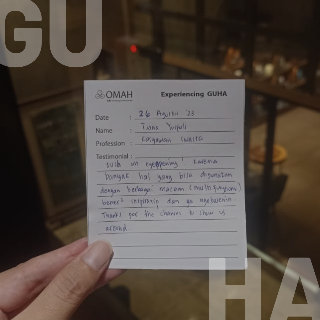 Seneng banget bisa join Guha Experience, belajar banyak + amazed ngelihat bagaimana material & ruang yang dimanfaatkan secara kreatif bisa jadi sesuatu yang fungsional & disaat yang bersamaan juga estetik! menginspirasi & mengubah cara pandang kita kalau rumah itu bisa jadi apapaun yang kita suka, working space, library, mesh, tempat kandang ayam. kambing, musholla, etc. Salute!