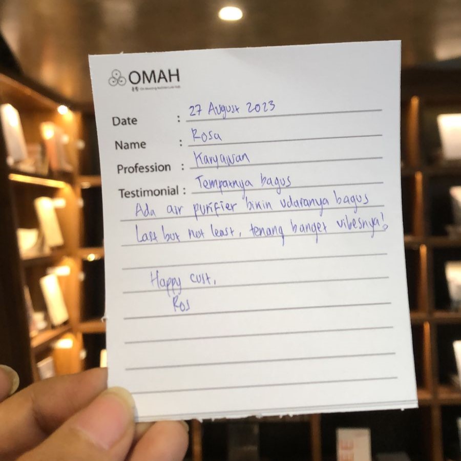 Tempatnya bagus, ada air purifier bikin udaranya bagus. Last but not least, tenang banget vibes-nya!