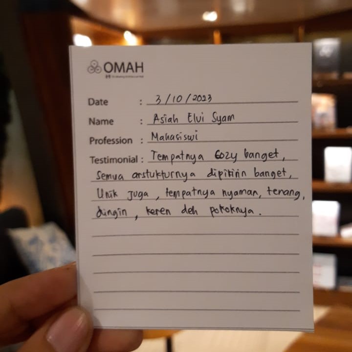 Tempatnya cozy banget, semua arstukturnya dipikirin banget, unik juga, tempatnya nyaman, tenang, dingin, keren deh pokoknya.