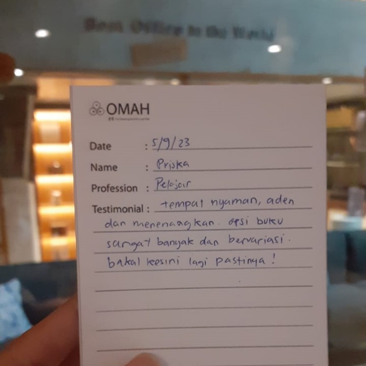 Tempat nyaman, adem dan menenangkan. Opsi buku sangat banyak dan bervariasi. Bakal kesini lagi pastinya!
