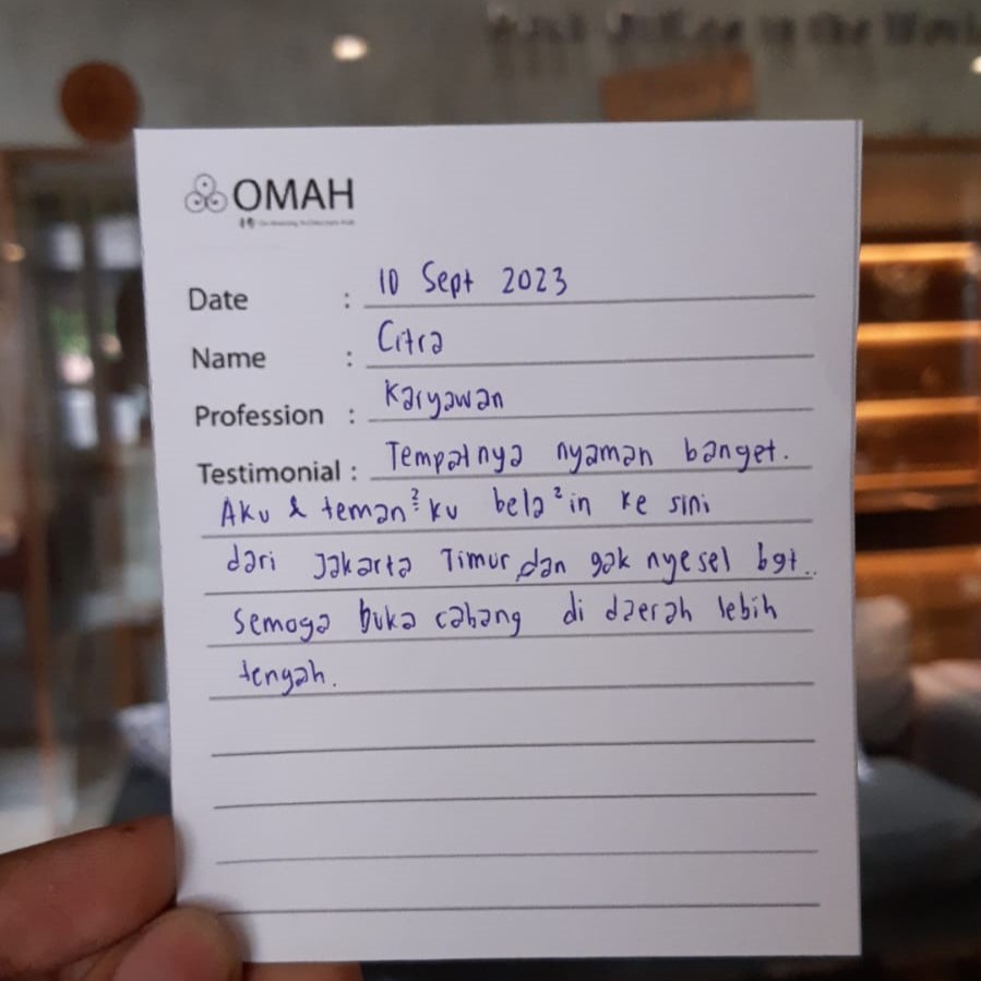 Tempatnya nyaman banget. Aku & teman-temanku bela-belain kesini dari Jakarta Timur dan gak nyesel banget. Semoga buka cabang di daerah lebih tengah.