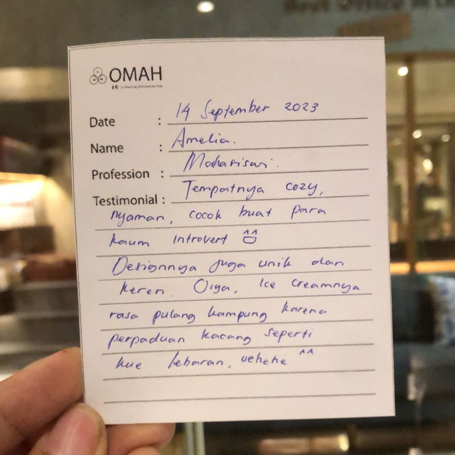 Tempat-nya cozy, nyaman, cocok buat para kaum introvert. Design-nya juga unik dan keren. Oiya, ice cream-nya rasa pulang kampung karena perpaduan kacang seperti kue lebaran. Hehehe